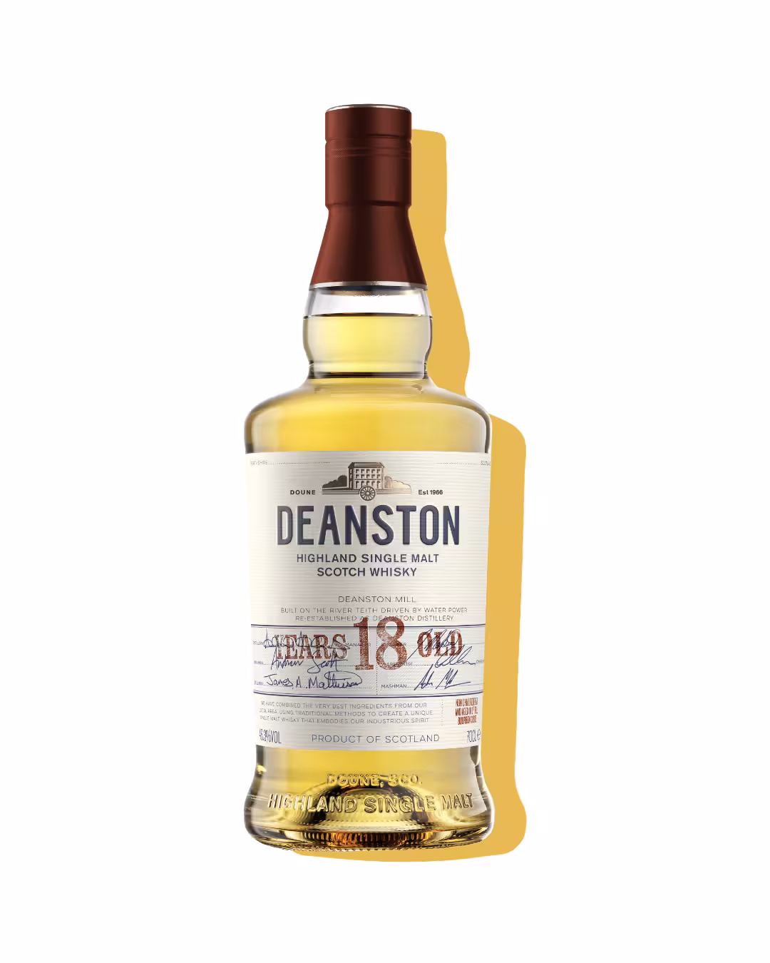 Deanston ist ein authentischer Highland Single Malt aus Schottland, der in einer ehemaligen Baumwollmühle aus dem Jahr 1785 hergestellt wird, die in den 1960er-Jahren zur Destillerie umgebaut wurde.